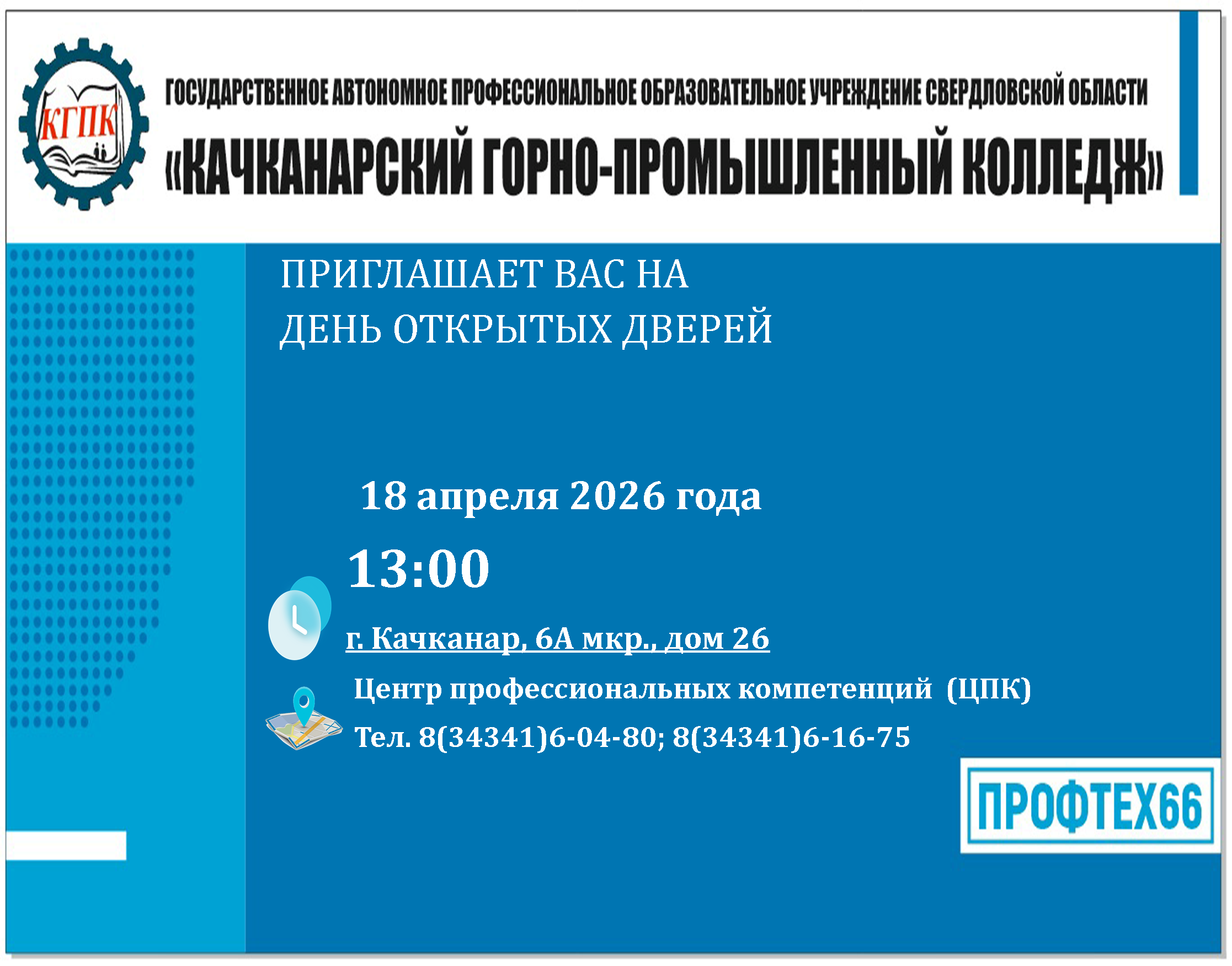 ГАПОУ СО "Качканарский горно-промышленный колледж" является некоммерческой организацией. Учредителем и собственником имущества учреждения является Свердловская область. Полномочия учредителя учреждения осуществляет Министерство образования и молодежной политики Свердловской области (minobraz.egov66.ru), полномочия собственника имущества учреждения осуществляет Министерство по управлению государственным имуществом Свердловской области. Качканарский горно-промышленный колледж – это многопрофильное образовательное учреждение, которое было основано еще в 1969 году. За время его работы неоднократно менялся статус заведения (от училища до колледжа). В декабре 2006 года произошло объединение трех учреждений профессионального образования, располагавшихся на территории муниципального образования г. Качканар под общим названием - ГОУ СПО «Качканарский горно-промышленный колледж» с отделением «Кадетская школа-интернат».