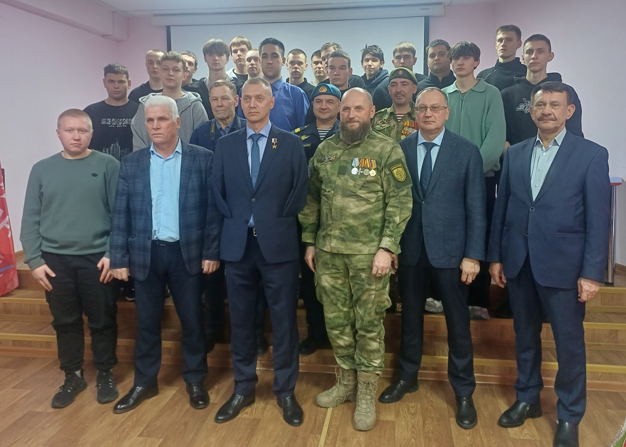 Максим Владимирович кратко рассказал присутствующим о своем подвиге, но лейтмотивом беседы стало мужество русского солдата. Много важных вопросов задал гость студентам, заставляя их задуматься.